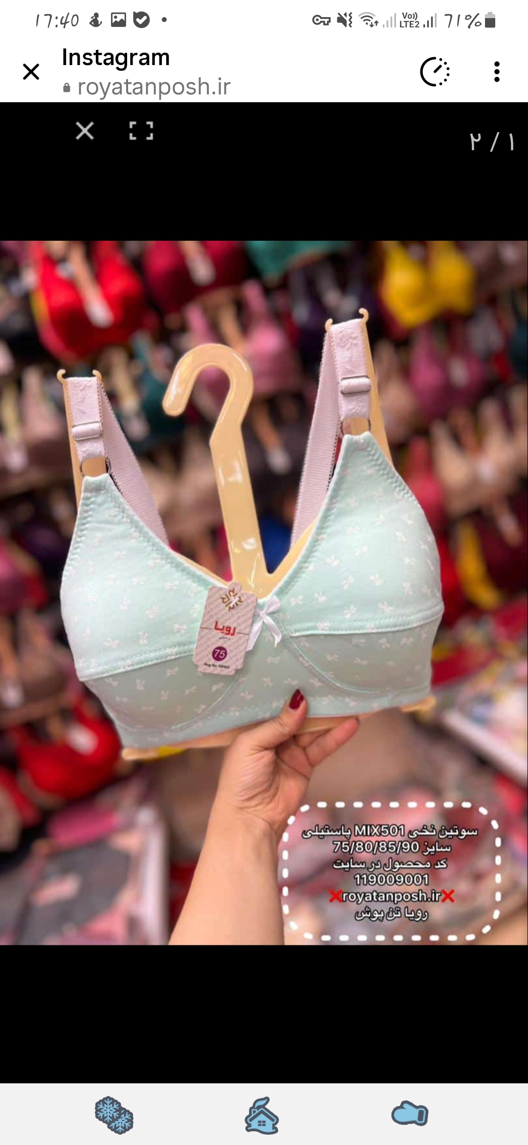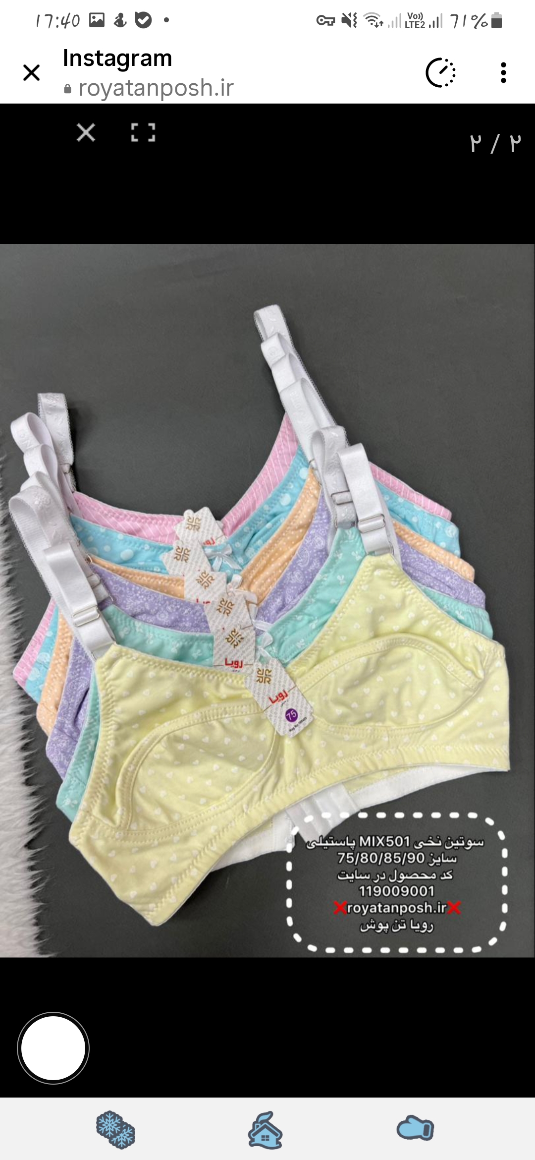 سوتین نخی MIX 501 پاستیلی زنانهسایز۷۵-۸۰-۸۵-۹۰ برند رویا جنس نخی
