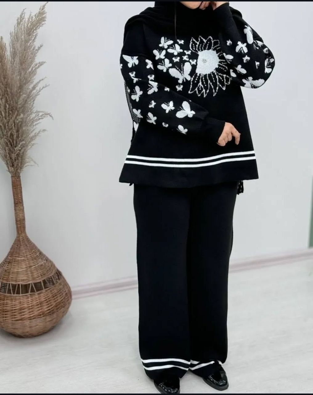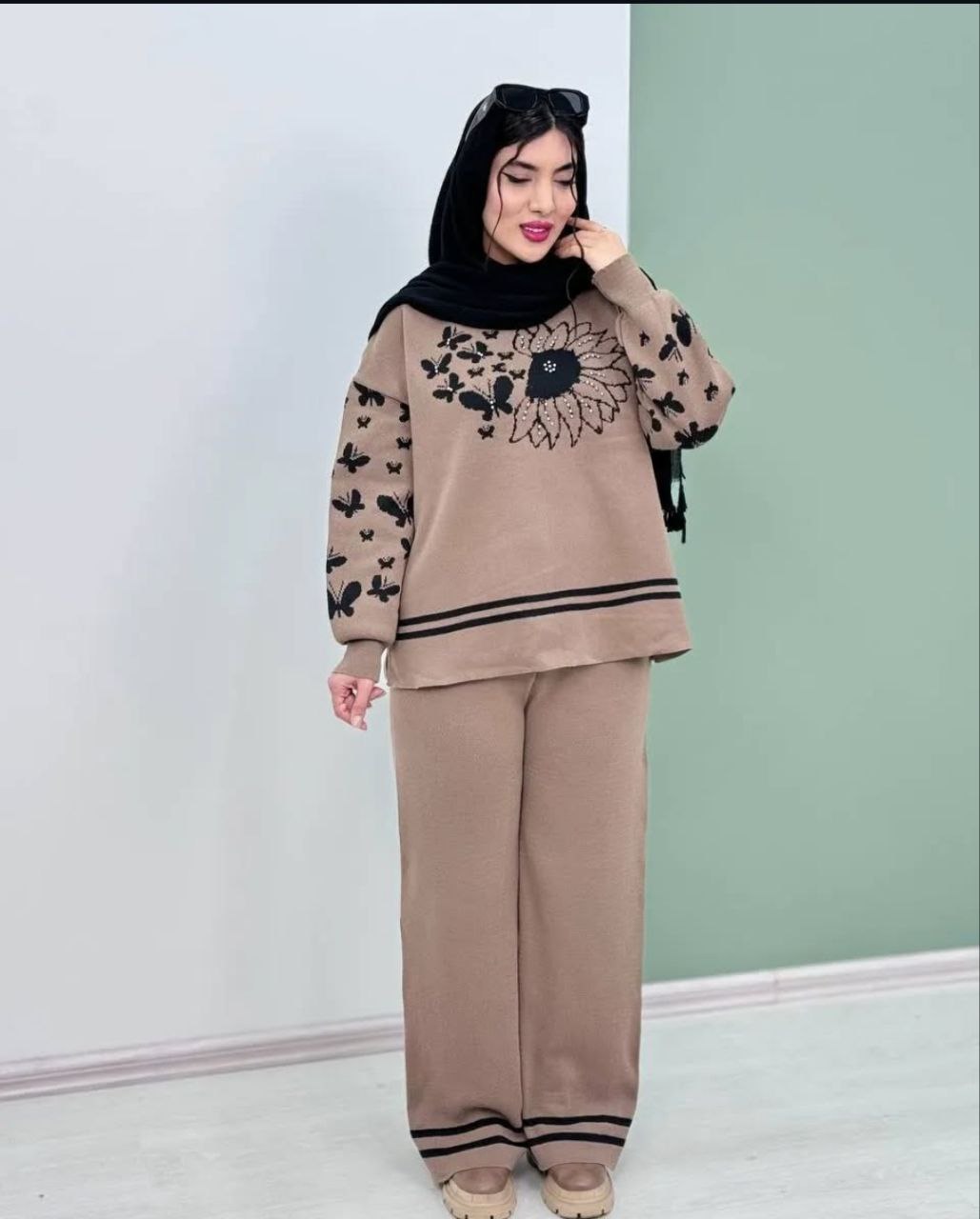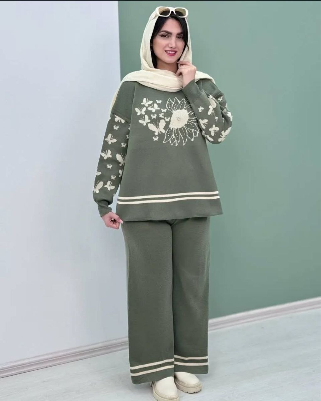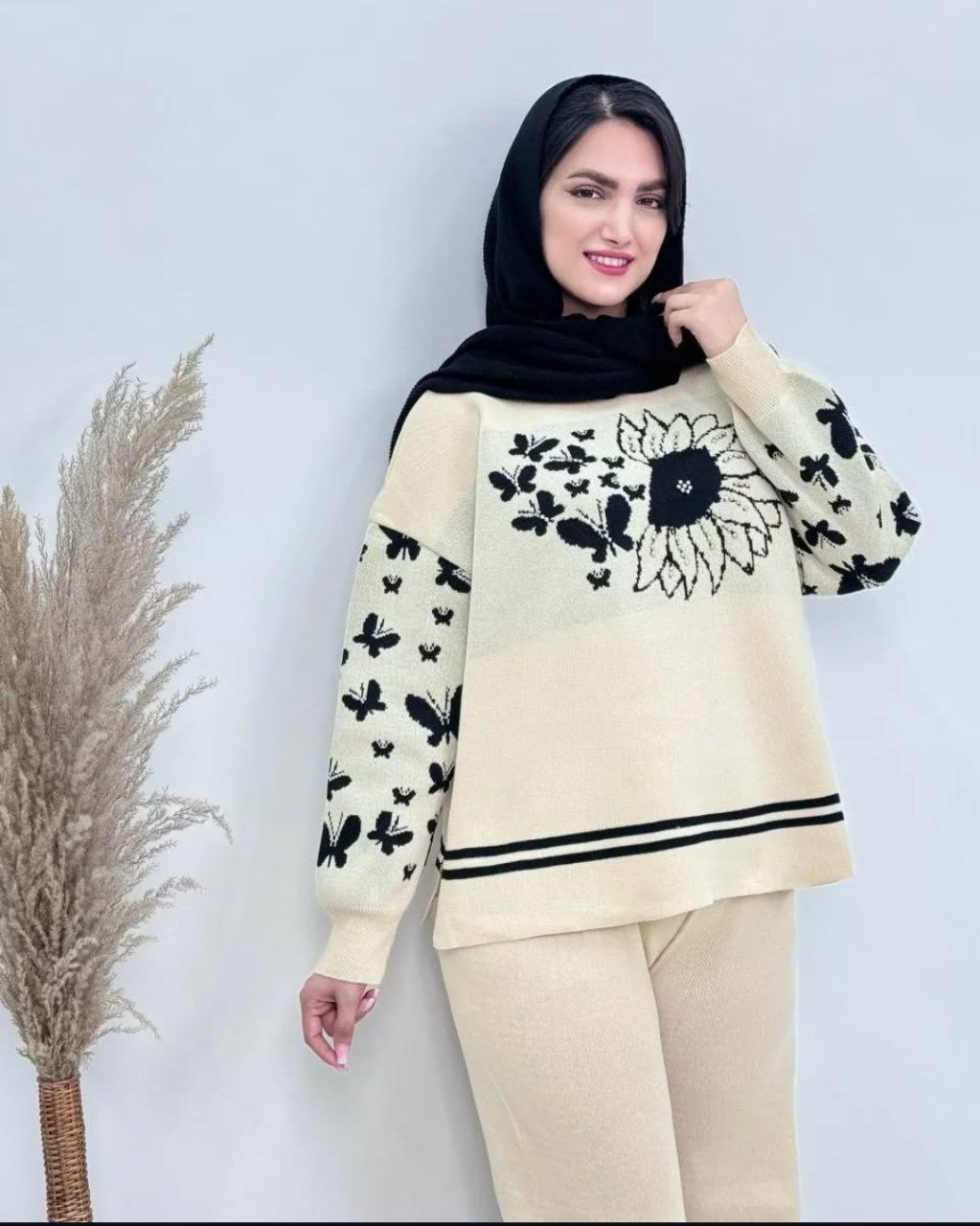 ست بلوز شلوار بافت گلدار مدل پروانه