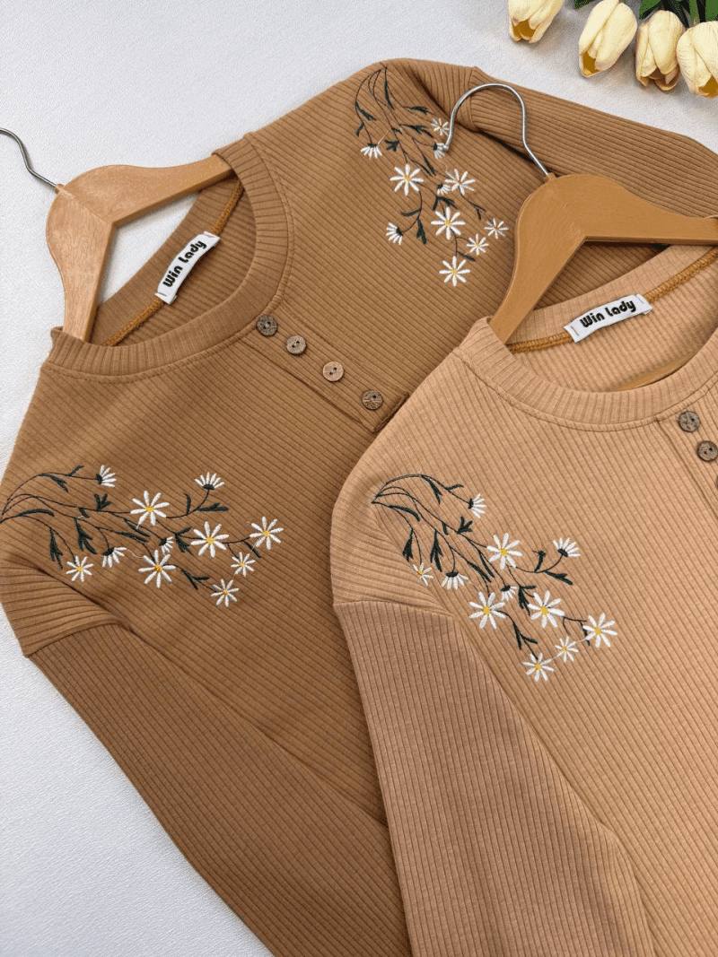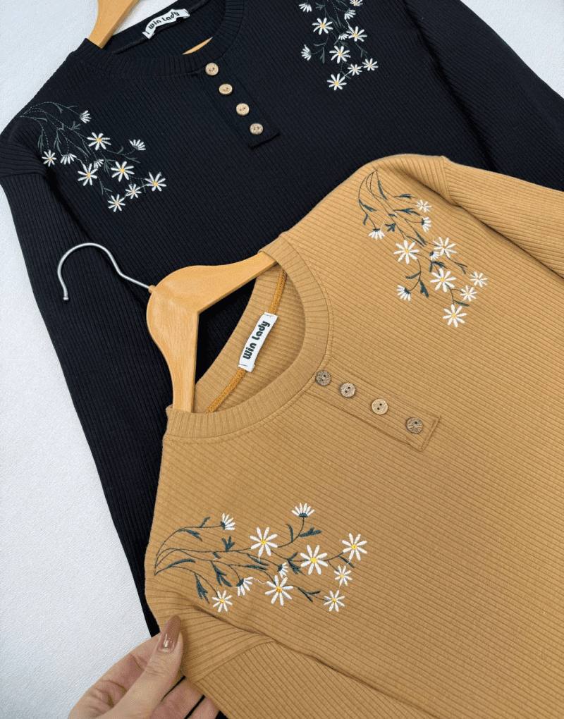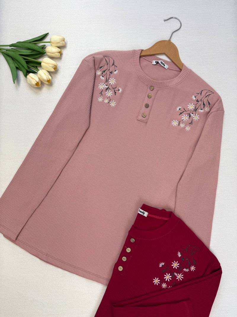 بلوز کرکره ای سر شانه گلدوزی دکمه نما